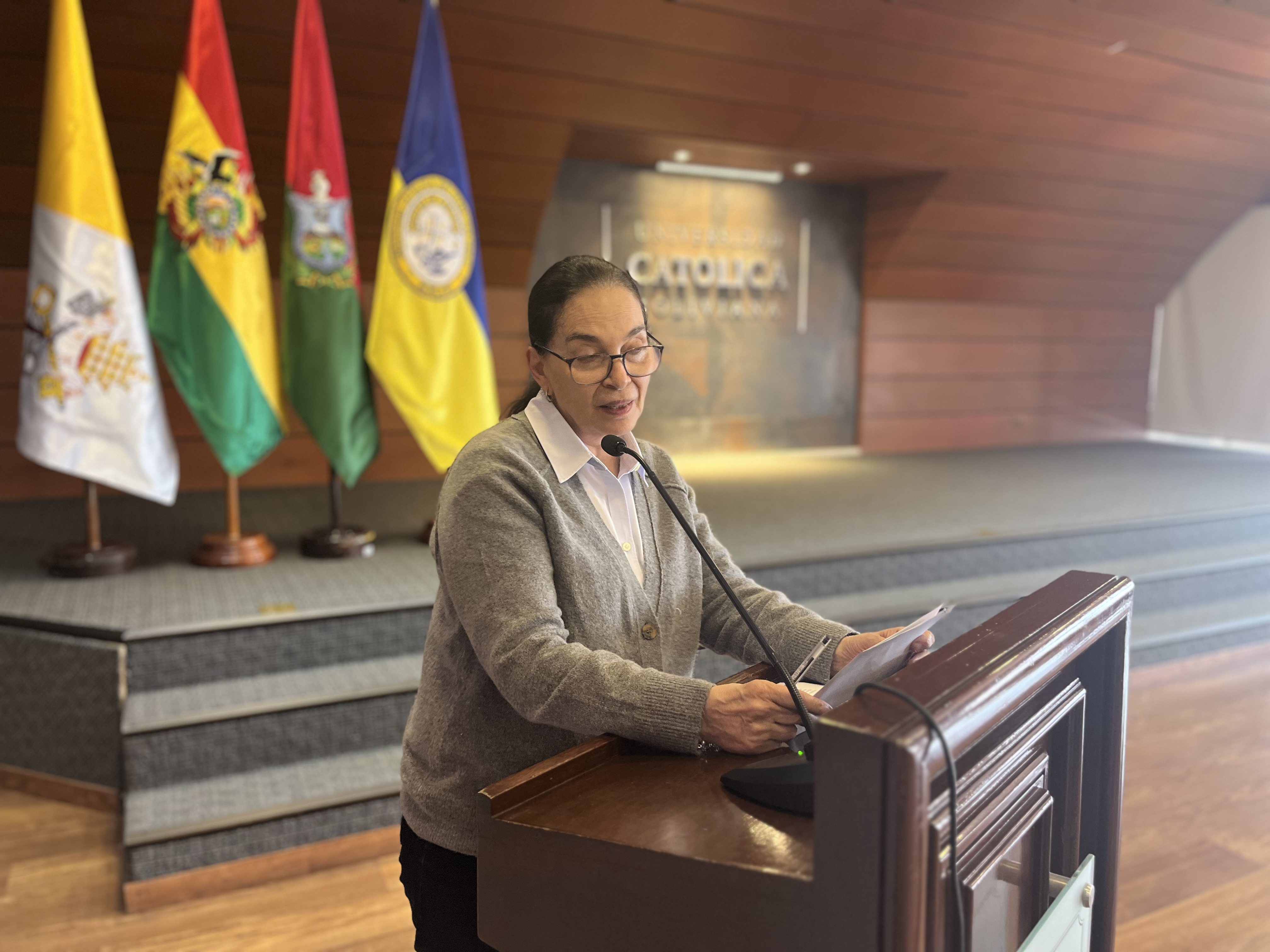 La inauguración de la Hackathon de Neurotecnología se realizó en el Paraninfo de la U.C.B. Sede La Paz, donde la primera autoridad en hacer uso de la palabra fue la rectora de Sede La Paz, Ximena Peres, quien estaba emocionada por dar luz verde a un evento alumbrado por Carrera de Psicología, perteneciente a la Facultad de Ciencias Sociales y Humanas, donde trabajó durante muchos años antes de llegar al rectorado.