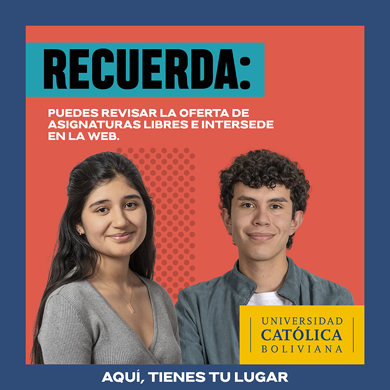 ASIGNATURAS INTERSEDE: Son asignaturas ofertadas por las diferentes sedes de la Universidad Católica Boliviana “San Pablo” (La Paz, Cochabamba, Tarija y Santa Cruz). Tienen la característica de ser virtuales con algunas excepciones en las que pueden ser híbridas.