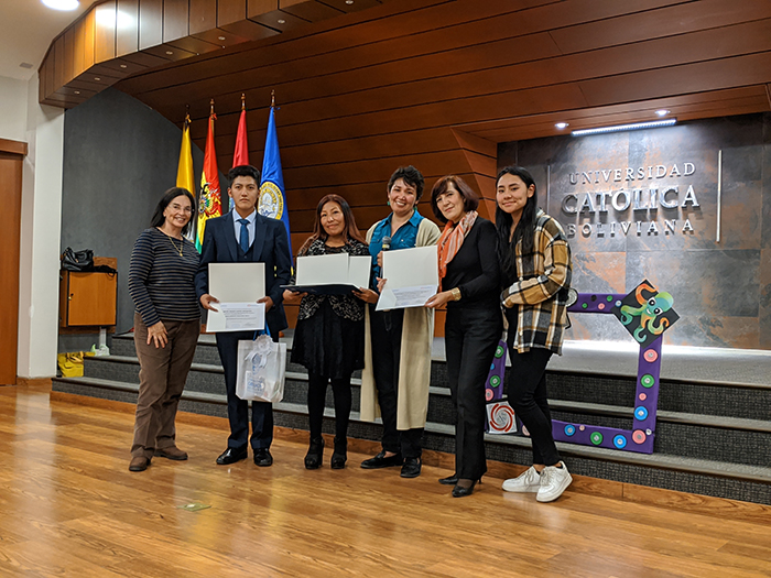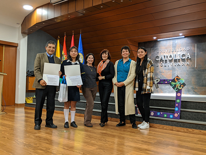 La Directora Dra. Alejandra Martínez y la docente tiempo completo MSc. Karina García, afirman que desde UCB – Psicopedagogía se sienten muy honradas en promover el encuentro de innovaciones educativas en aula e identificar talentos notables para la educación, capaces de diseñar acciones pedagógicas que aportan a la educación boliviana, promoviendo transformación en aula.