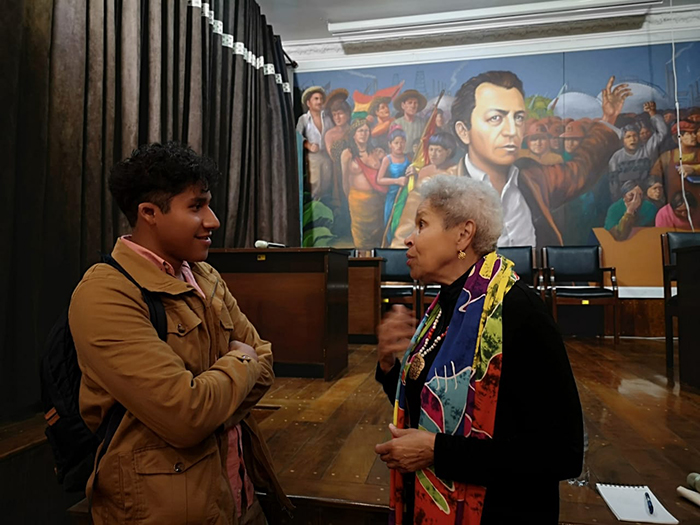 Sheila Walker, reconocida antropóloga estadounidense y cocreadora de esta beca, hizo preguntas sobre la experiencia de todos los participantes al liderar y fungir como mentores de tres generaciones de becarios afrobolivianos desde el 2020 hasta el 2023.