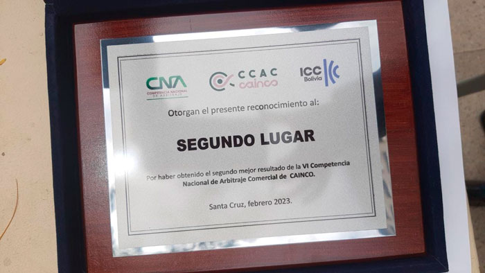 El pasado 3 y 4 de febrero estudiantes de la carrera de derecho Sede La Paz, participaron de la Sexta Competencia Nacional de Arbitraje Comercial en Santa Cruz obteniendo el segundo lugar.