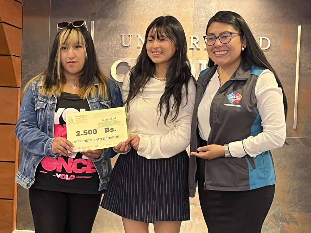 Estos jóvenes fueron parte del proyecto denominado Bootcamp Next Level Emprende, que, traducido, significaría algo así como “entrénate para tu siguiente emprendimiento”, una iniciativa en la que participaron la Universidad Católica Boliviana (U.C.B.) “San Pablo” Sede La Paz, el Gobierno Autónomo Municipal de La Paz, ChildFund, Save the Children y el Centro de Multiservicios Educativos (Cemse).