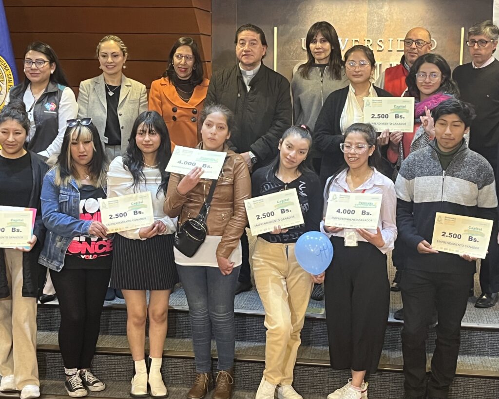 El acto de entrega de los premios se realizó en el Paraninfo de la U.C.B. Sede La Paz, que estuvo colmado de los jóvenes que asistieron a la capacitación, junto a autoridades y docentes de la universidad, y representantes de las entidades que participaron en el proyecto.