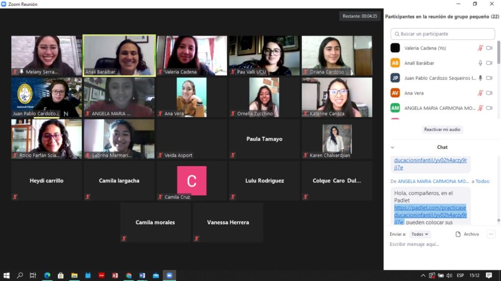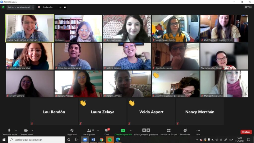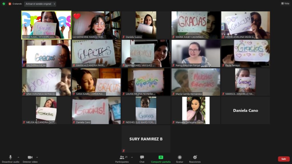 Este encuentro es el culmen de un proceso de Clase Espejo desarrollado en el marco de Conexión Global propiciado por la U.C.B. en el que se adscribió y participó como integrante del equipo del programa la Lic. Marco, que junto a las docentes María Isabel Holguín de la Universidad Católica Luis Amigó, y Nancy Merchán,de la Universidad UNIMINUTO, realizaron acciones de coordinación y desarrollo de clases el 8, 11 y 12 de mayo, de acuerdo al siguiente detalle: