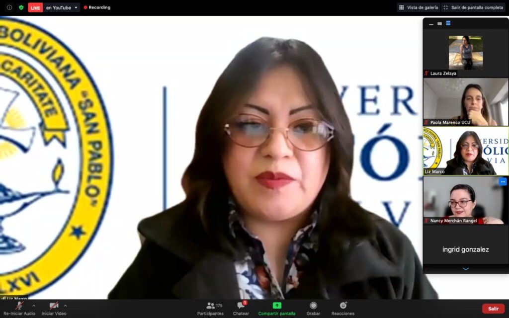 • Liz Marco Tórrez con el tema: Intraculturalidad e interculturalidad a través del juego –  Universidad Católica Boliviana «San Pablo», UCB Regional La Paz