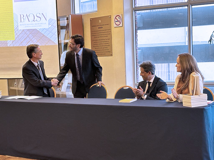 Cóctel y colaboración con BAQSN: Durante la presentación, se disfrutó de un ameno momento de confraternización, que incluyó el cóctel en honor al nuevo lanzamiento. Asimismo, se resaltó la colaboración con el prestigioso Bufete Aguirre, Quintanilla, Soria y Nishizawa (BAQSN), invitado a ser editor especial en este número. La destacada presencia y participación activa de BAQSN no solo enriqueció la discusión, sino que también fortaleció los lazos entre la academia y la práctica legal.