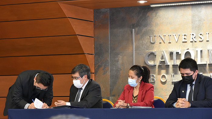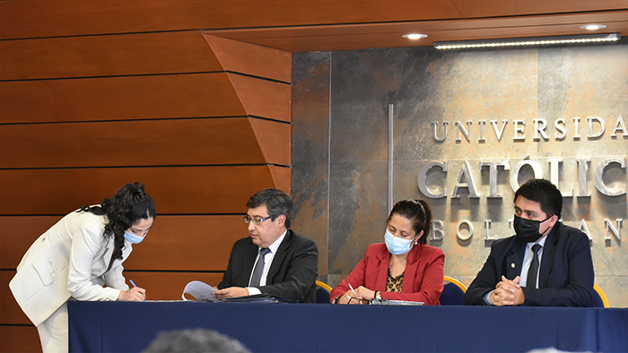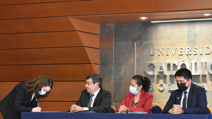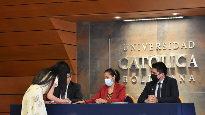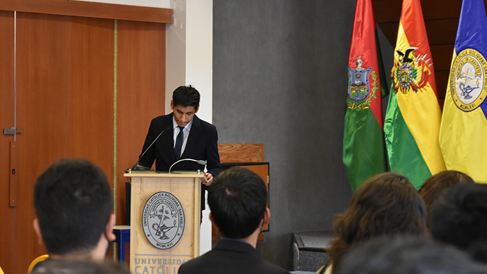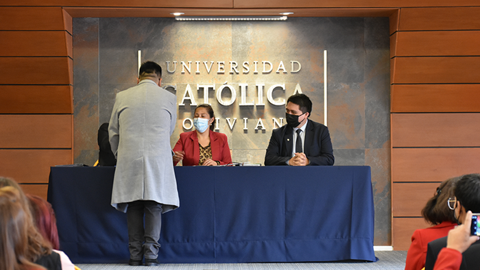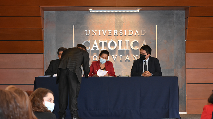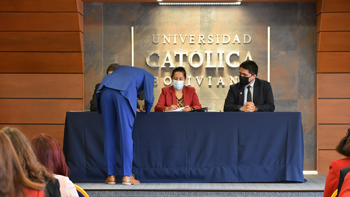 El pasado viernes se llevó a cabo el acto de firmas de Graduación por Excelencia de la Facultad de Ingeniería. El evento comenzó con la lectura de acta de graduación por parte del Ing. Rudy Guaráz, Jefe de Estudios de Ingeniería Biomédica. Posteriormente dieron unas palabras tres de los destacados profesionales para concluir con un emotivo discurso de la Dra. Yolanda Ferreira Arza, Directora Académica Sede La Paz