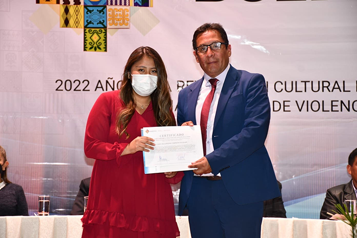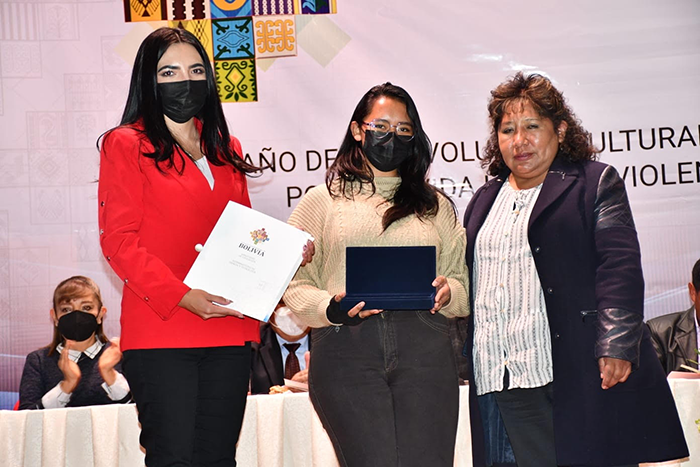 Reconocimiento especial a la Ing. Alejandra Cabrera Aguilar de Ing. Química en el área “Recursos naturales, medio ambiente y biodiversidad” con el proyecto: ESTUDIO DEL EFECTO FUNGICIDA DE PRINCIPIOS ACTIVOS DERIVADOS DE QUINUA EN CEPAS DE HONGOS (Aspergillus flavus y Phytophthora palmivora).