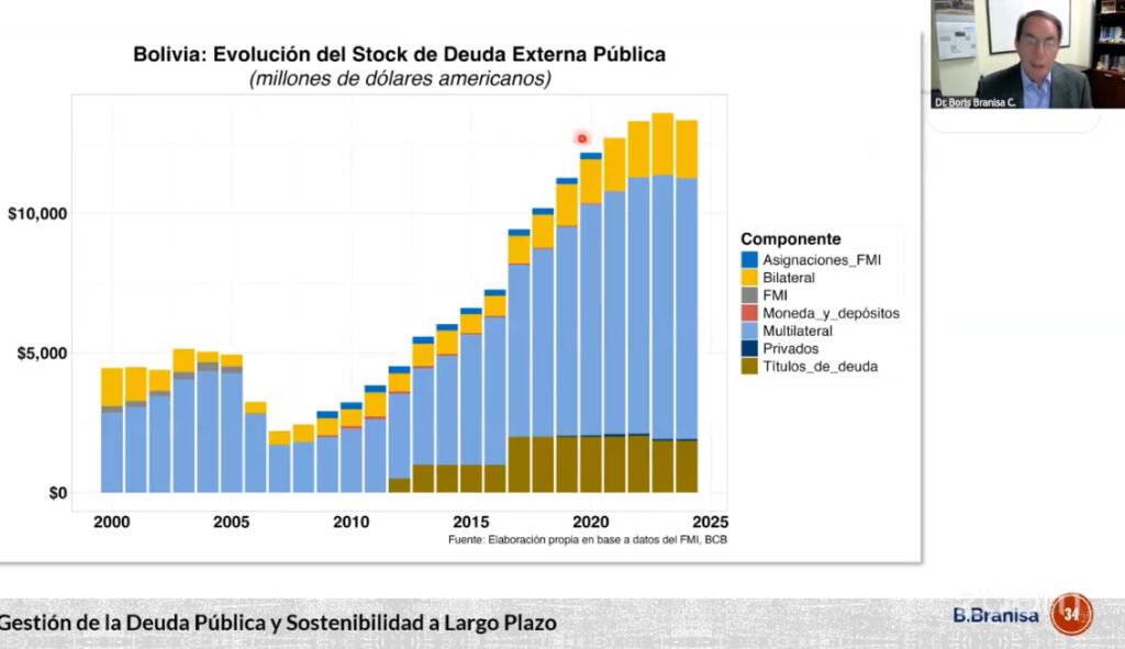 El profesor de la EpC, entidad que forma parte de la  Universidad Católica Boliviana (U.C.B.) “San Pablo” Sede La Paz expuso ese análisis durante la presentación titulada Desafíos macroeconómicos para Bolivia en 2025, que se realizó este miércoles 26 de marzo mediante la plataforma Zoom.