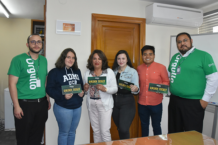 Este “golden ticket”, les da la opción de participar en una jornada en la que podrán conocer más del BMSC. El grupo de estudiantes está compuesto por: Leonardo Siles de Economía, Sabrina Balazs, Joel Monzón y Luciana Mustafá de Administración de Empresas.