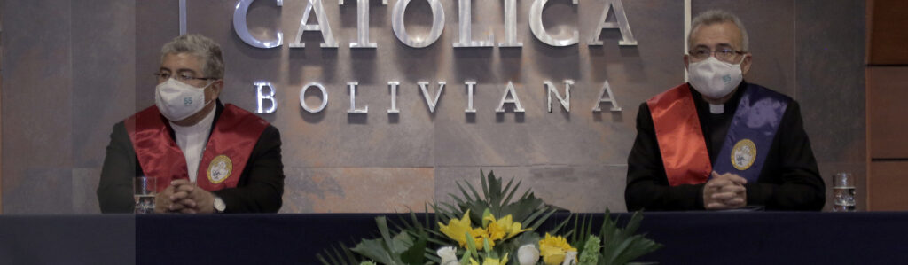 “La visión que tuvieron todos estos grandes hombres y mujeres era formar profesionales cristianos al servicio de la sociedad boliviana, al servicio del pueblo. Esa visión es la que debe seguir iluminando nuestro trabajo hoy, en este momento histórico”, señaló.