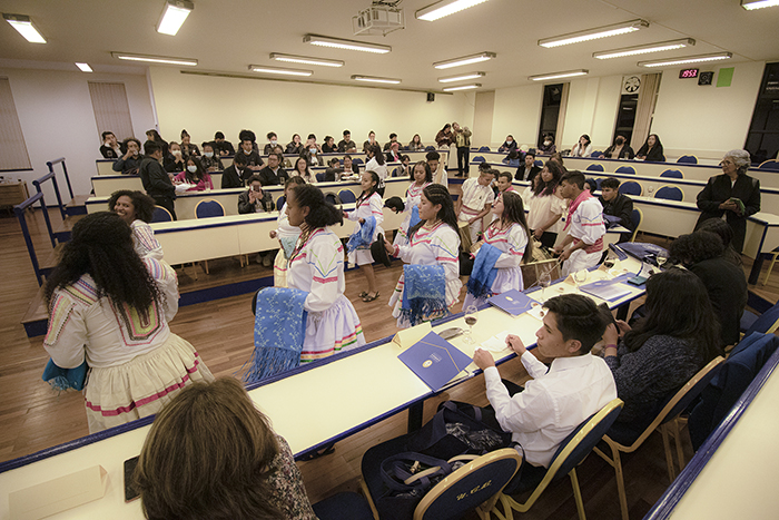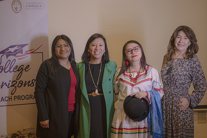 Para el acto de graduación tuvimos la presencia de Gonzalo Fortún, encargado de los programas de inglés de la Embajada de Estados Unidos y de Ilona Aleksandrova, Agregada Adjunta de Cultura de la Embajada de Estados Unidos. Ilona Aleksandrova, en las palabras de circunstancia, destacó la importancia de apoyar a los grupos minoritarios en Bolivia y que esa es la principal misión del programa “College Horizons Outreach Program”. También la Coordinadora del Centro de Idiomas, Mónica Flores, valoró el esfuerzo que los becarios pusieron en sus estudios y en su crecimiento personal. Posteriormente a las palabras, se realizaron dos actos artísticos: una interpretación de una canción en inglés “Happy Together” de “The Turtles” y un número de danza “Saya” que deleitó a todos los presentes ya que mostró la riqueza cultural de la comunidad afro-boliviana. Todos los becarios recibieron una doble certificación: una proveniente de la Universidad Católica Boliviana “San Pablo” y otra de la Embajada de Estados Unidos. Así mismo, recibieron unos regalos para que continúen motivados en este camino que ahora estará lleno de más oportunidades académicas, profesionales y personales gracias al idioma inglés.