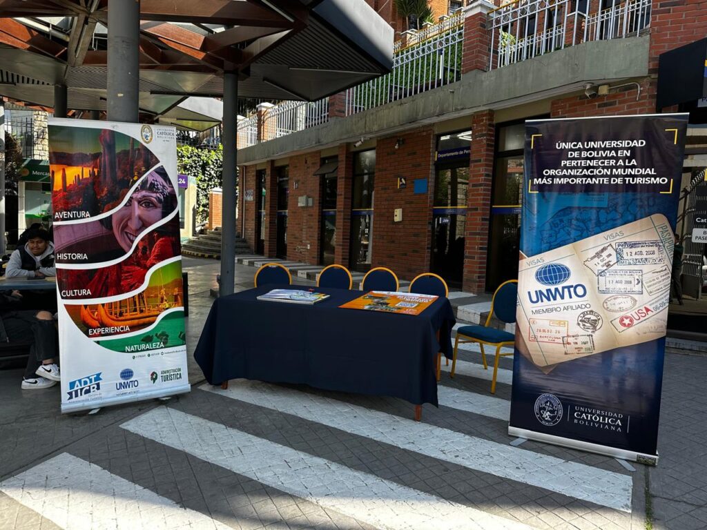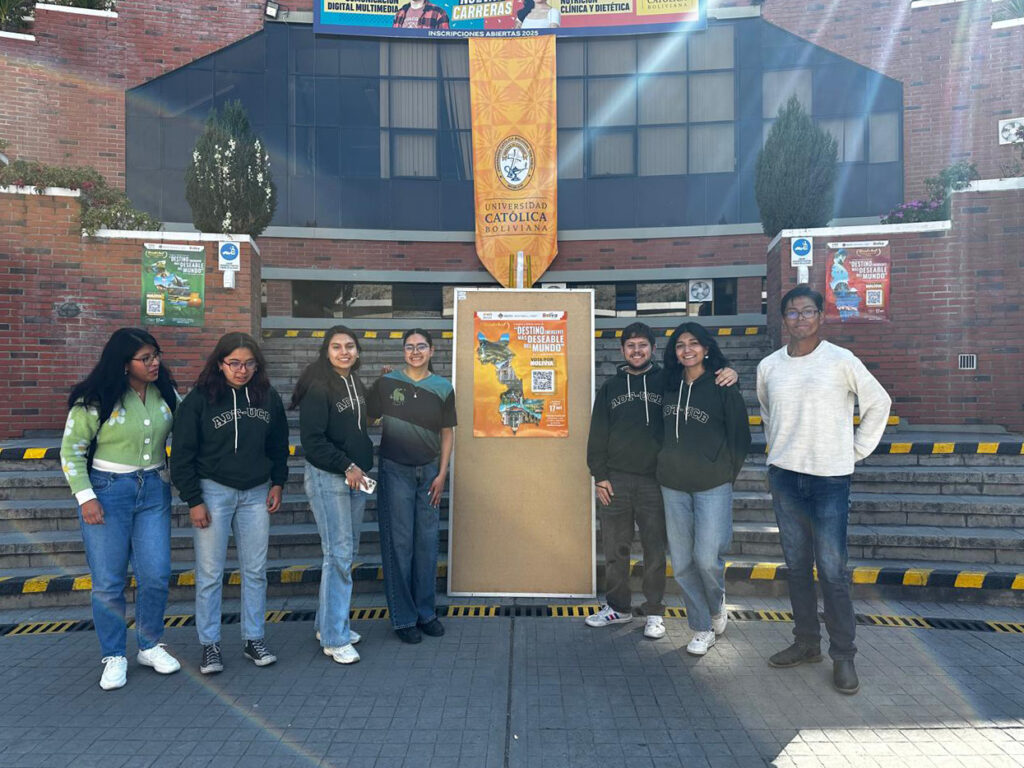 Este 17 de septiembre de 2025, el jefe de la Carrera de Administración Turística, Marco Antonio Abastoflor Portugal, junto a sus estudiantes, lideró la iniciativa incentivando a toda la comunidad universitaria a votar. El atrio principal de la U.C.B. se llenó de afiches con códigos QR, facilitando a estudiantes y visitantes sumarse a esta importante causa.