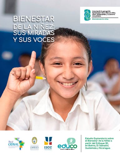 Noviembre, 12 de 2020. La ONG Educo, junto al Instituto de Investigaciones en Ciencias del Comportamiento (IICC) de la Universidad Católica Boliviana “San Pablo”, lanzaron este día la investigación regional “Bienestar de la niñez: sus miradas y sus voces”; estudio exploratorio con niñas, niños, adolescentes y su entorno más cercano (familia, escuela y comunidad), ejecutado en cuatro países de la región: Bolivia, Nicaragua, Guatemala y El Salvador; cuyo objetivo es hacer una aproximación al bienestar de la niñez en países latinoamericanos.