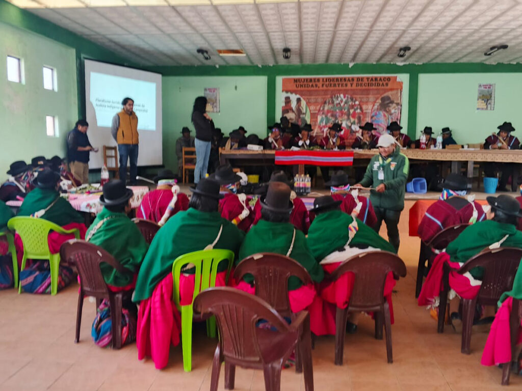 La actividad se realizó en el contexto de la iniciativa «Territorios resilientes ante la crisis climática: fortaleciendo capacidades para la gestión de los recursos naturales en comunidades campesinas», organizada por la Fundación Tierra. El evento tuvo lugar en la sede del Cabildo de Autoridades Originarias de Taraco Marka (Caotm), y contó con la participación de autoridades indígenas, líderes comunitarios y miembros de organizaciones sociales locales.