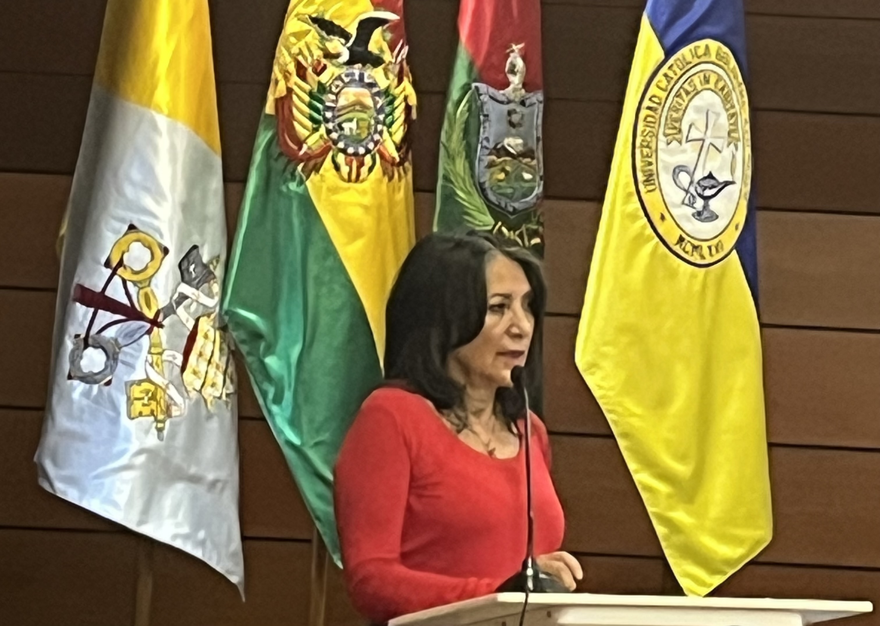 La rectora de Sede La Paz de la U.C.B., Ximena Peres, fue la encargada de cerrar la Cátedra y en su discurso afirmó que  las reflexiones de los panelistas representaron “un gran aprendizaje”.