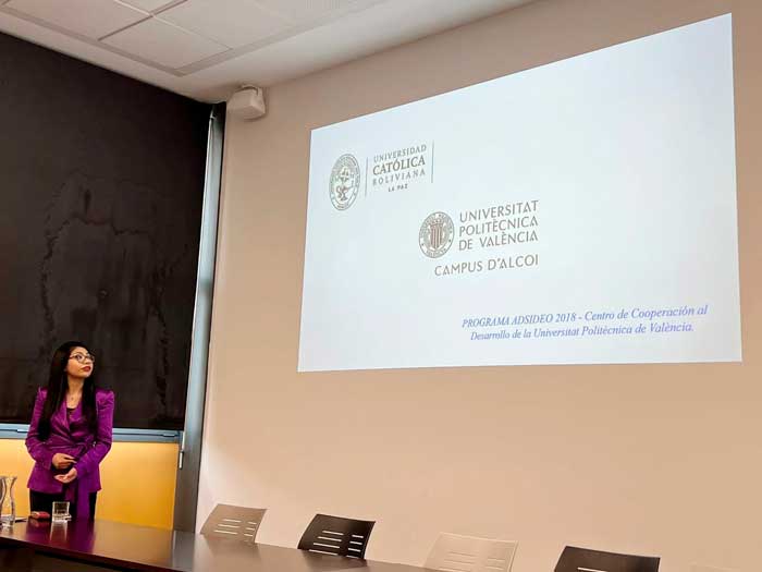 La Dra. Paola Alvizuri, docente de la carrera de Ingeniería Ambiental e investigadora del Centro de Investigación en Agua Energía y Sostenibilidad-CINAES, defendió su Tesis Doctoral en el Programa de Ingeniería y Producción Industrial de la Universitat Politècnica de València de España, con el financiamiento de la Universidad Católica Boliviana Sede La Paz, obteniendo una calificación de Excelente con la mención Cum Laude.