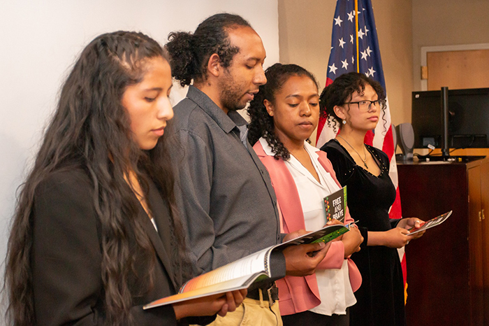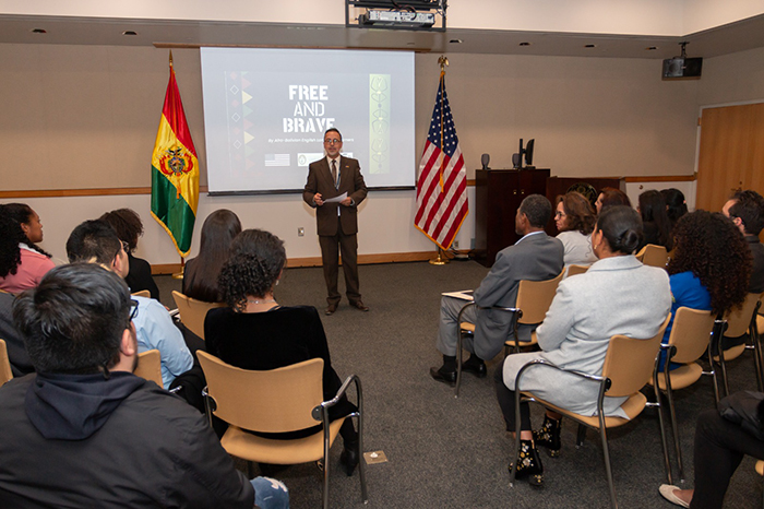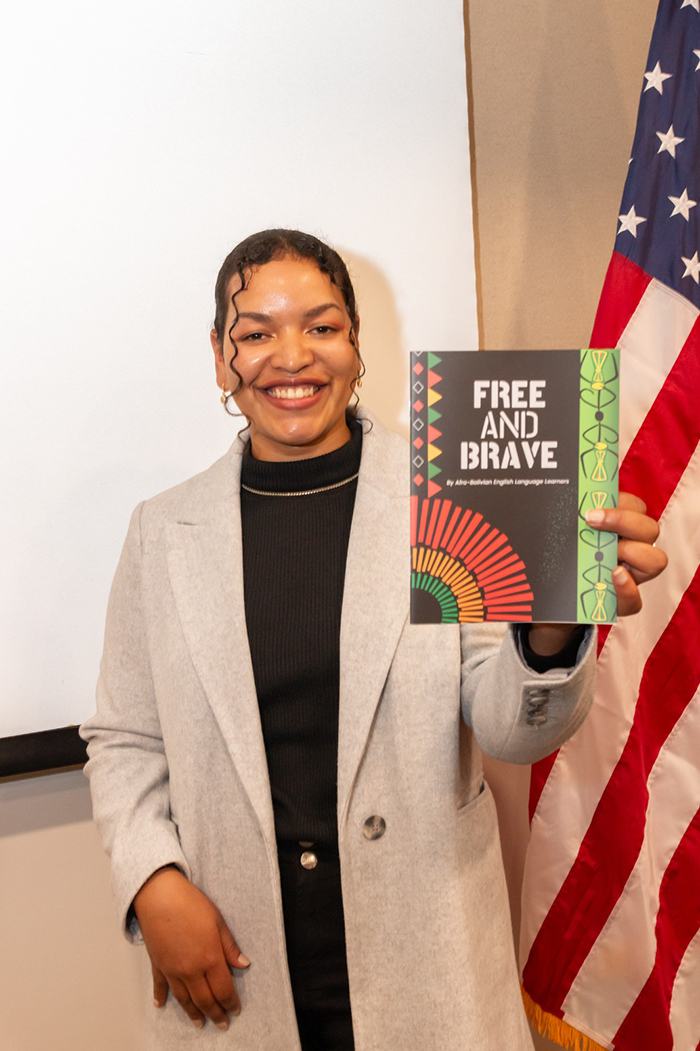 El día de ayer, 14 de noviembre, se llevó a cabo la presentación de la publicación titulada “Free and Brave” escrita por los becarios de origen afro-boliviano del programa de inglés “College Horizons Outreach Program” que coordina el Centro de Idiomas de la Universidad Católica Boliviana “San Pablo”- Sede La Paz en convenio con la Embajada de Estados Unidos. El objetivo principal de este proyecto de escritura que inició en uno de los módulos de inglés dictado por la Mgs. Mónica Flores Rojas fue que todos los becarios pudieran explorar su identidad cultural y personal mediante la exploración de un momento que haya marcado sus vidas.