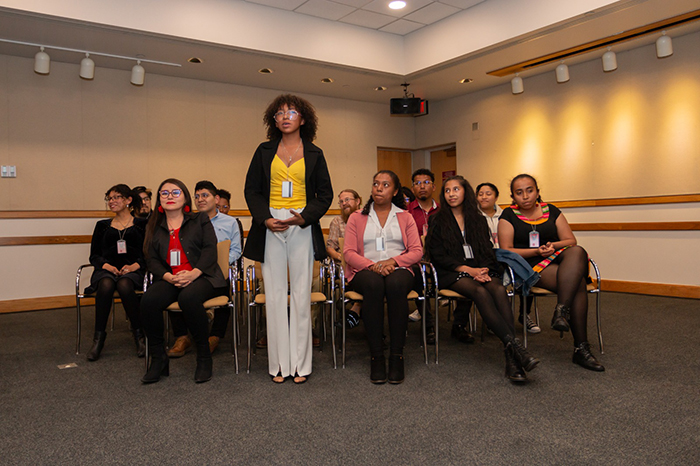 Las autoridades de la Universidad Católica “San Pablo”: Dra. Ximena Peres Arenas, Rectora de la Sede La Paz, Dra. Yolanda Ferreira, Directora Académica y Dra. Alejandra Martínez, Directora del Departamento de Educación, fueron recibidas por oficiales de la Embajada de Estados Unidos: Anthony Tranchina, Agregado de Cultura, Laura Arriaza, Agregada Adjunta de Cultura y Gonzalo Fortún, Coordinador de Programas de Inglés. Después de las palabras de circunstancia de Mónica Flores Rojas, Coordinadora del Centro de Idiomas, Alizon Vásquez, becaria y diseñadora gráfica explicó todo el proceso de diseño de este proyecto que culminó con la publicación de 16 historias cortas escritas en inglés. Posteriormente, Alexandra Jira, Leslie Uruchi, Matihus Medina y Alexandra Arismendi procedieron a la lectura de extractos de sus historias que emocionó al público. También Juan Angola Maconde, becario e historiador afro-boliviano, leyó un poema en el idioma afro-boliviano que también es parte de esta publicación y dio unas palabras de circunstancia. Para finalizar se hizo la entrega oficial de la publicación de parte de la Universidad Católica Boliviana “San Pablo” a la Embajada de Estados Unidos. Esta es la tercera generación del programa “College Horizons Outreach Program” cuya graduación se realizará el día 7 de diciembre. El Centro de Idiomas celebra este gran logro que apoyará a la visibilización de la población afro-boliviana y agradece el apoyo de la Embajada de Estados Unidos con este tipo de proyectos de inclusión.