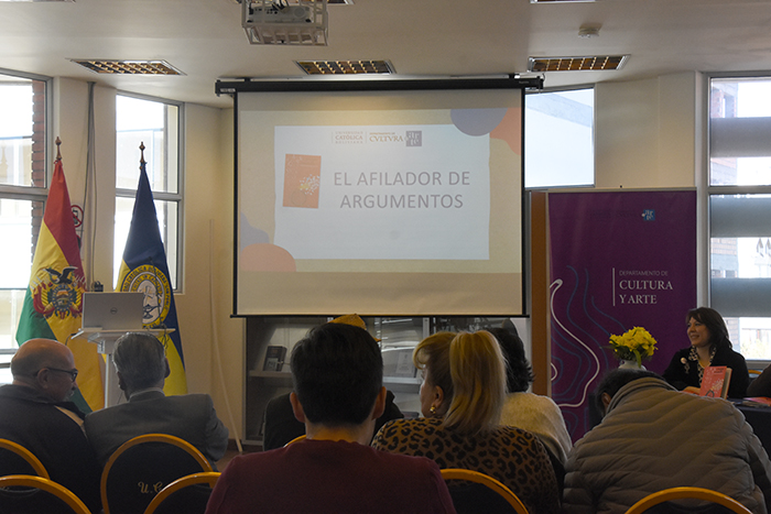 El día 15 de agosto, en instalaciones de la Universidad Católica Boliviana “San Pablo” Sede La Paz, se llevó a cabo la presentación del libro del Departamento de Cultura y Arte “El afilador de argumentos”. Al acto asistieron autoridades nacionales y de sede La Paz, quienes entregaron certificados de reconocimiento a todos los que participaron activamente en la elaboración de este texto.