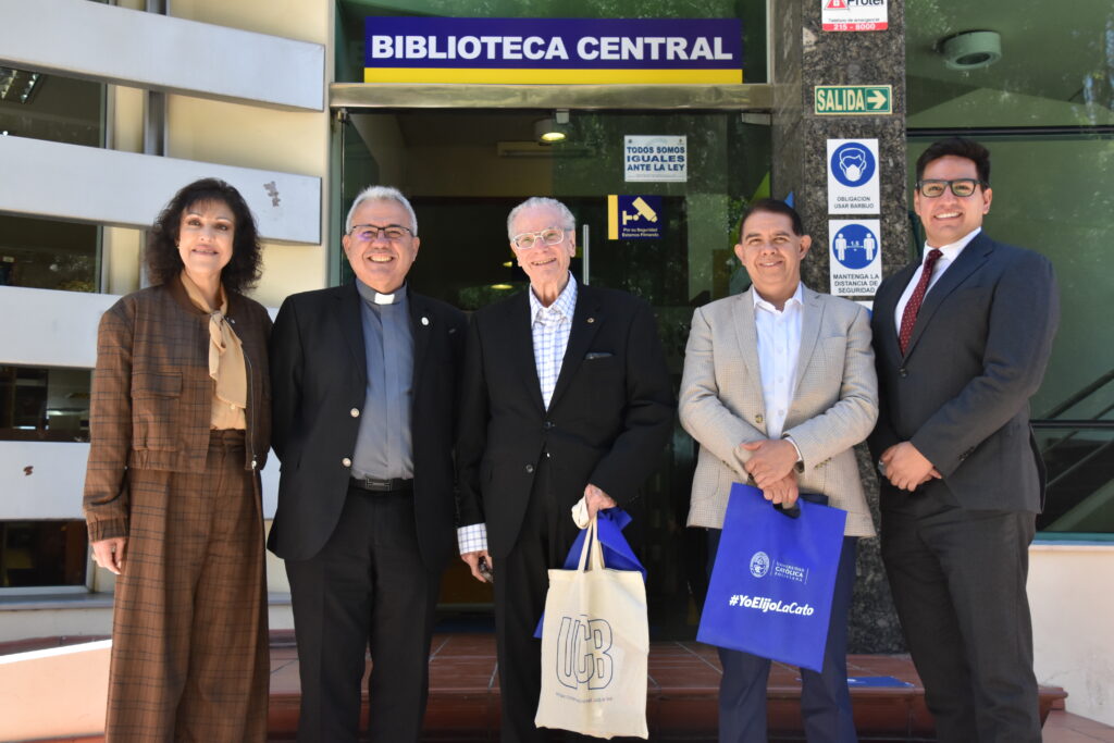 Máximo Carvajal Contreras (centro) con el rector nacional de la U.C.B. e invitados.