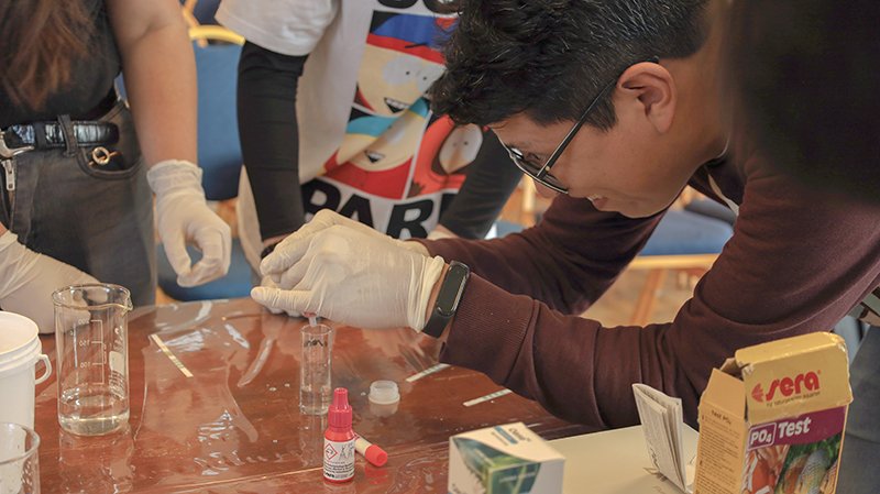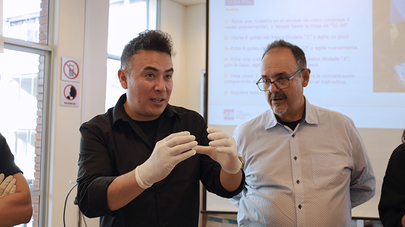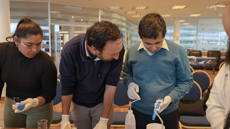 Uno de los momentos destacados fue la sesión práctica, donde los asistentes se capacitaron en el uso de equipos multiparamétricos para medir parámetros como pH, turbidez y conductividad. Esta experiencia motivó a los participantes y fortaleció sus habilidades técnicas para el monitoreo ambiental.