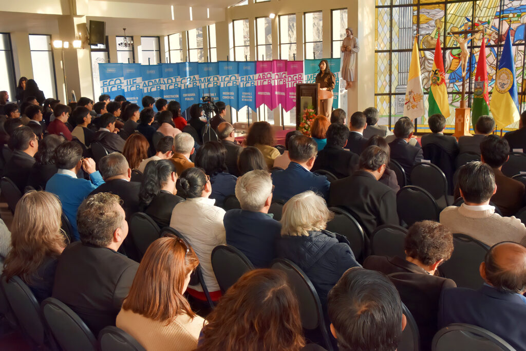 El inicio del acto, la rectora en funciones y directora académica de Sede, Yolanda Ferreira, expuso las principales características del proceso de estudio en la U.C.B. y destacó que sus profesionales tienen una formación “integral”, es decir que cuentan con una alta calidad en sus conocimientos, pero también una sensibilidad que los convierte en constructores de un país mejor.