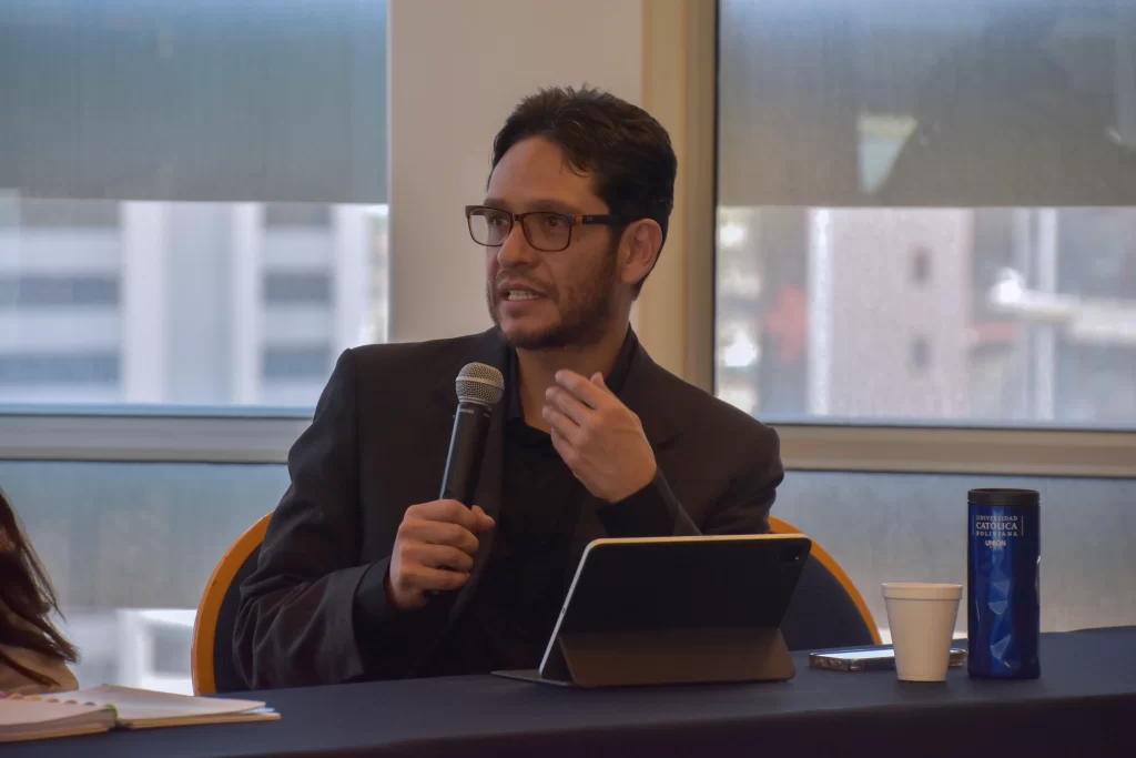 La mesa central estuvo a cargo de Tania Jiménez (resultados Pisiga), Alfonso Hinojosa (resultados Desaguadero) y Leonardo Villafuerte (IpD-UCB).